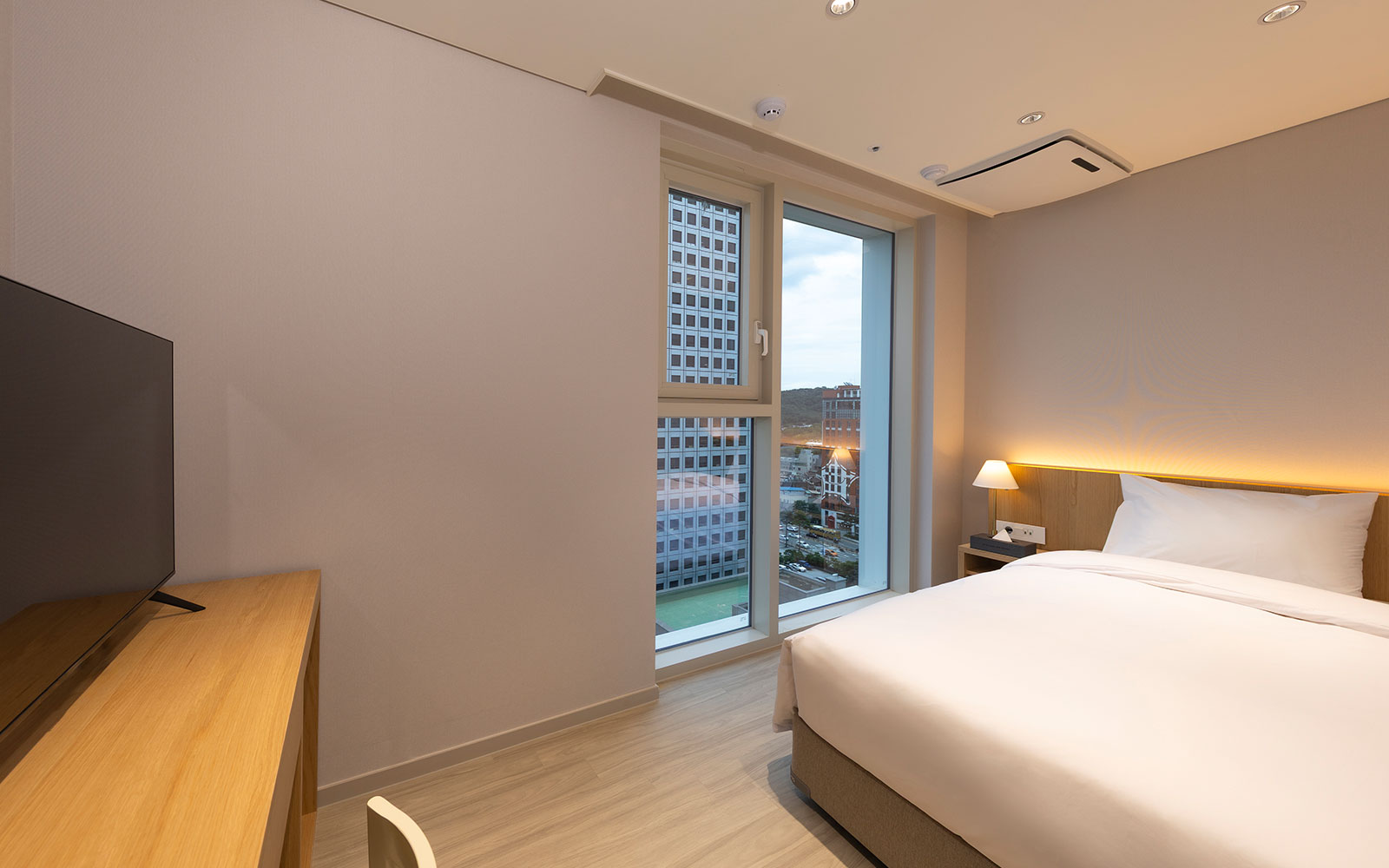 심플하면서도 포근한 더블 객실입니다. 폭 1,300mm 더블베드 1개로 가까운 동반자와 편안한 1박을 즐기실 수 있어요. 합리적인 가격에 기본에 충실한 편의가 장점입니다