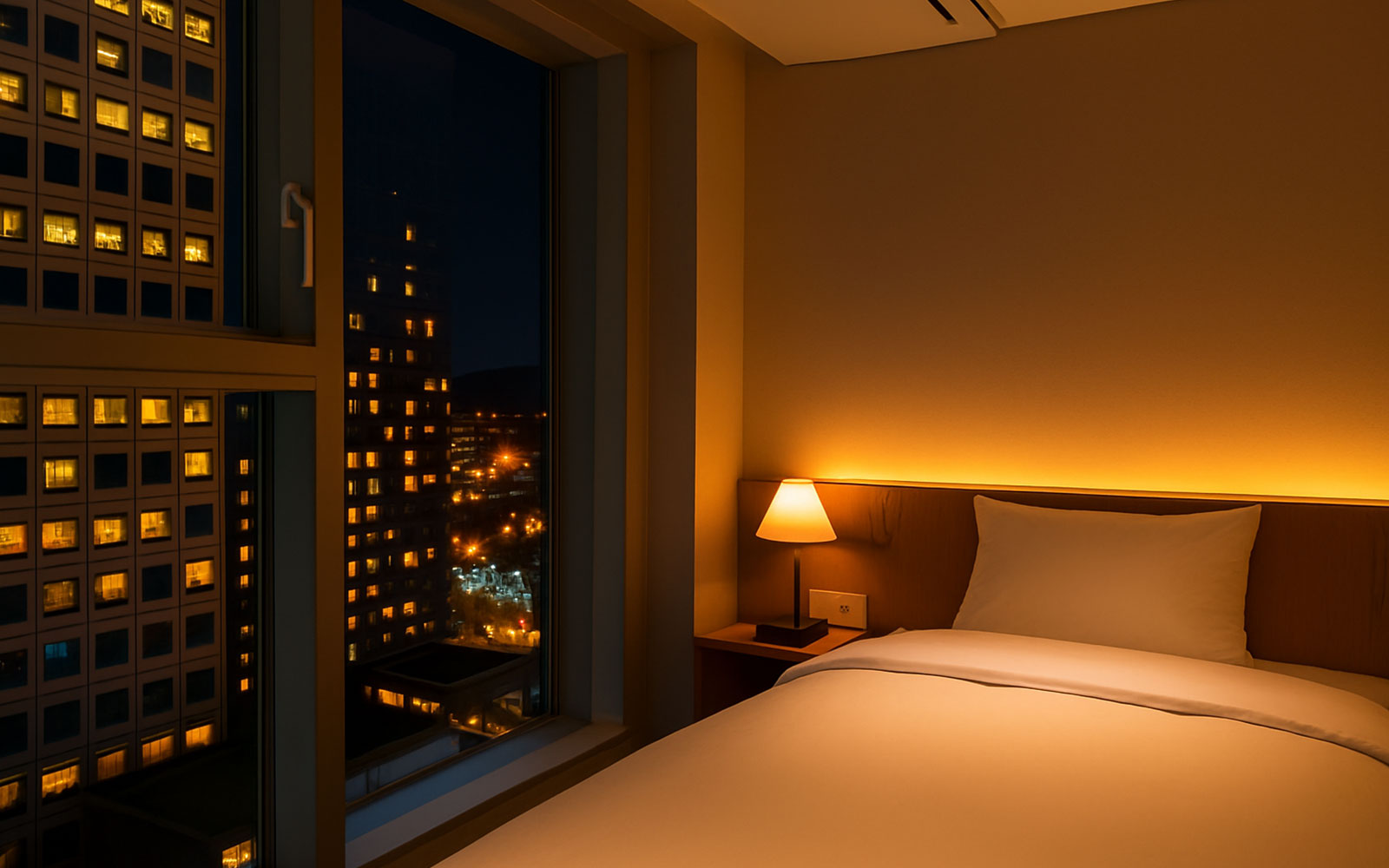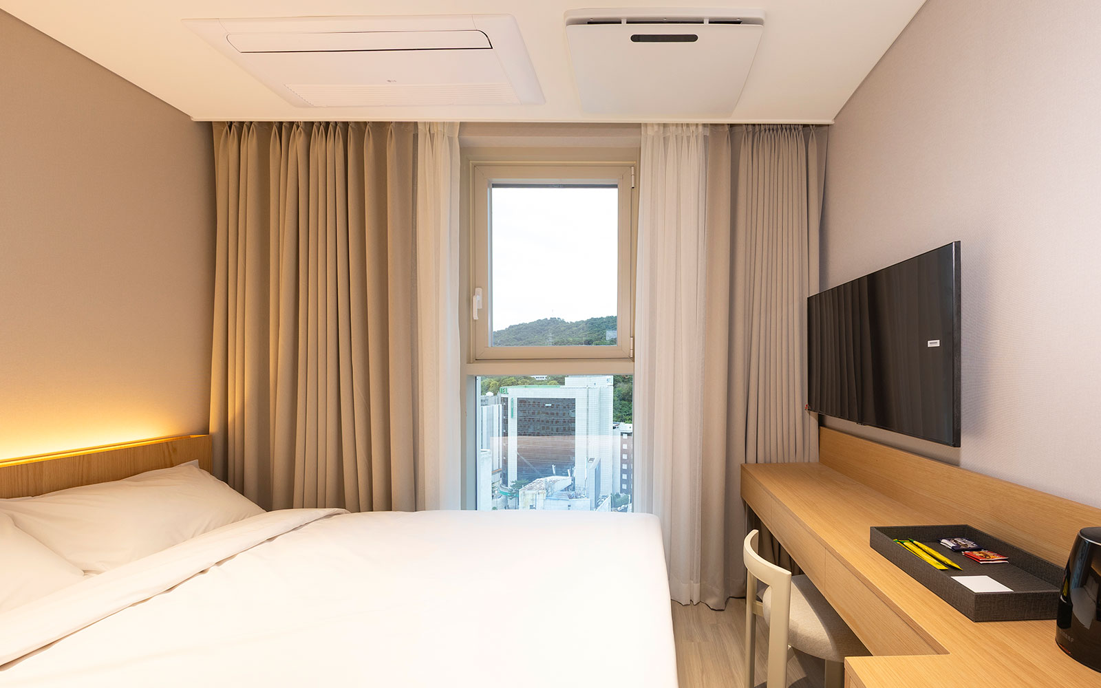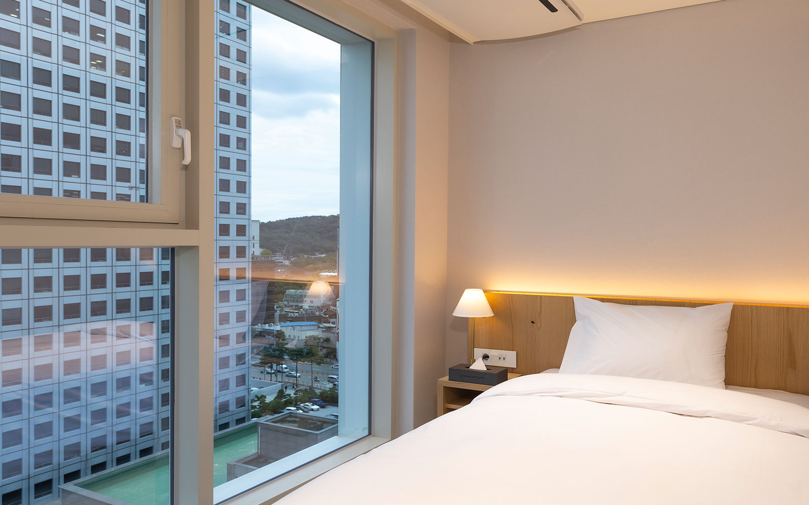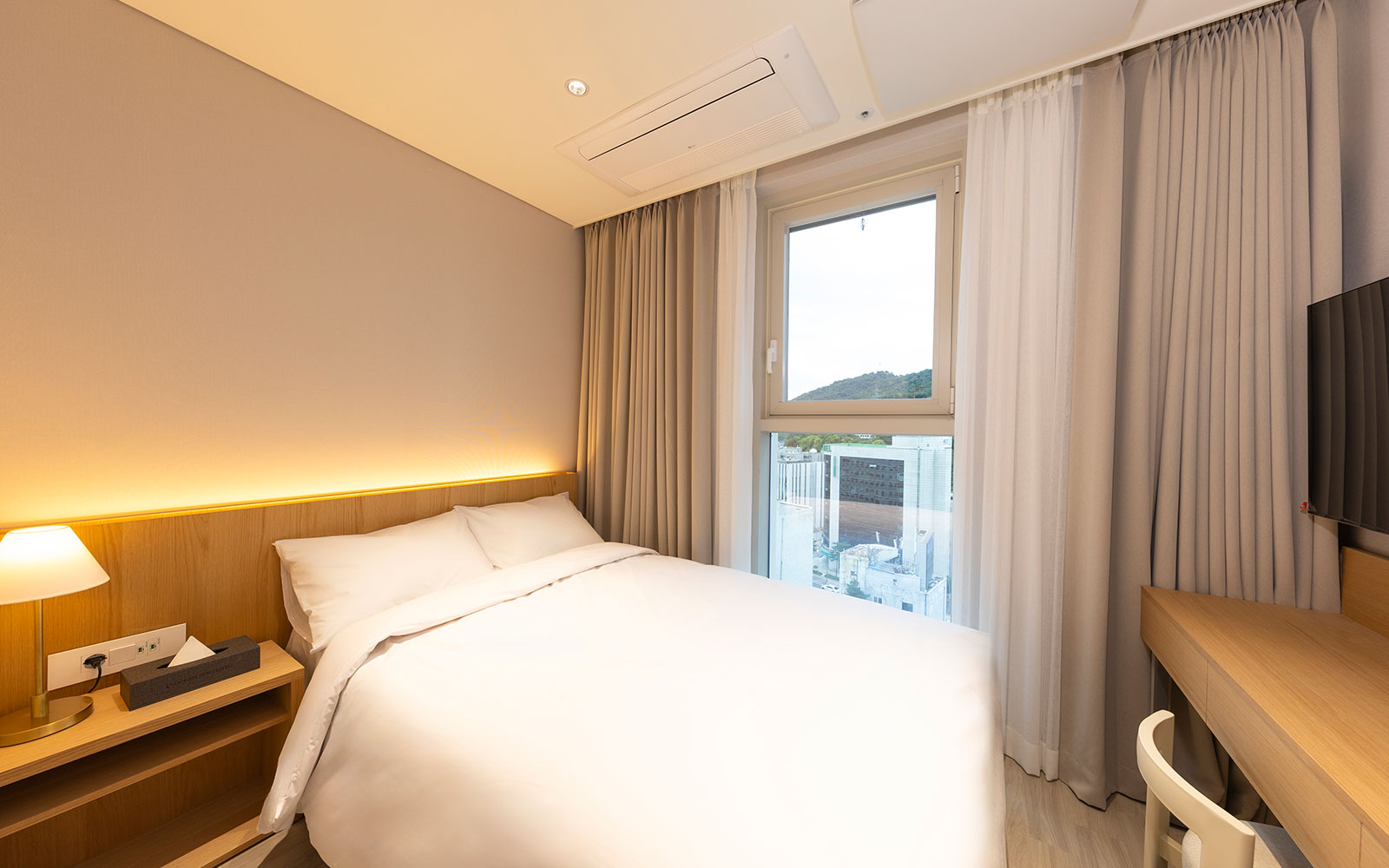 심플하면서도 포근한 더블 객실입니다. 폭 1,300mm 더블베드 1개로 가까운 동반자와 편안한 1박을 즐기실 수 있어요. 합리적인 가격에 기본에 충실한 편의가 장점입니다